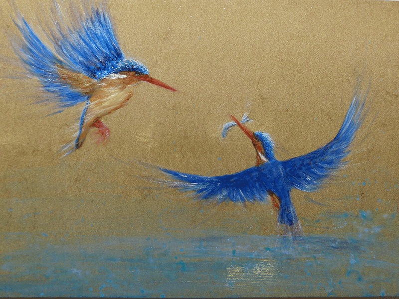 Malachite kingfishers Published 09.10.2018 at 800 × 600 in Wildlife and Sporting Malachite Kingfishers, Oil 12 x 16 inches
