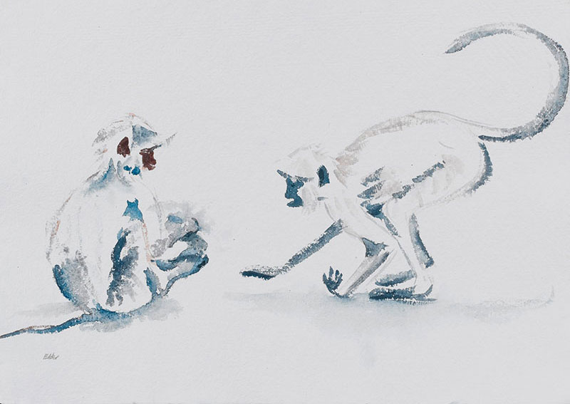 Monkeying Around Published 07.07.2018 at 800 × 567 in Wildlife and Sporting Monkeying Around, Watercolour, SOLD