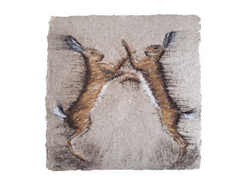 Spring Hares jpeg Published 01.07.2019 at 500 × 375 in Wildlife and Sporting Spring Hares, Pastel, SOLD Pastel on Handmade Himalayan Paper