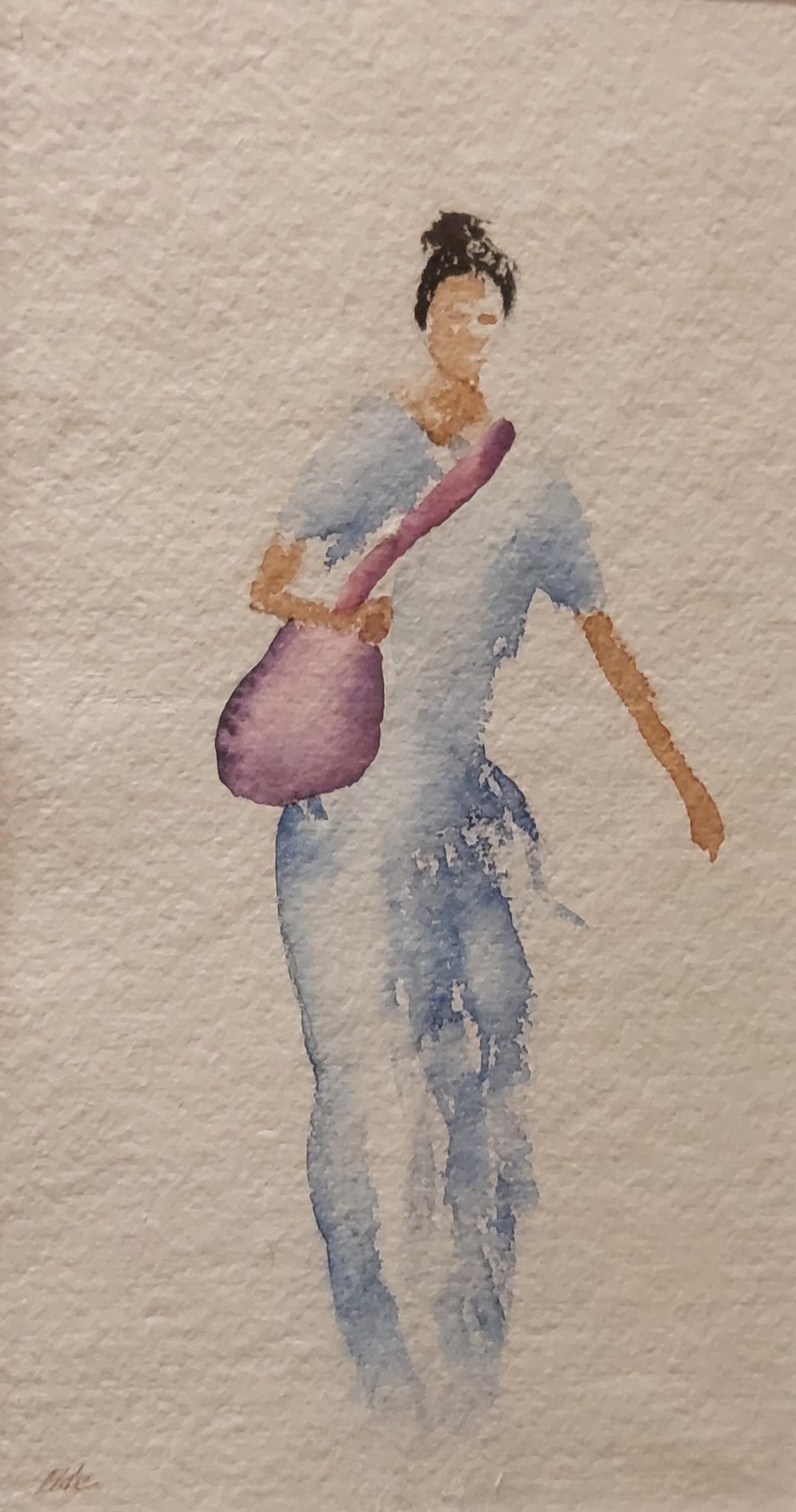20231120_164756 Published 21.11.2023 at 1349 × 2560 in Travel Off Shopping, Watercolour on Indian Khadi Paper, 10×5″, Framed 16×11″, Sale Price £245, Was £400