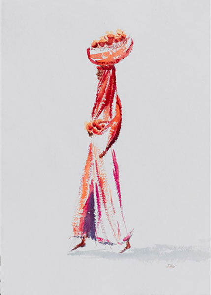 Fruit-seller Published 19.11.2023 at 429 × 600 in Travel Fruit Seller, Watercolour on Handmade Indian Paper, 11×18″, £420