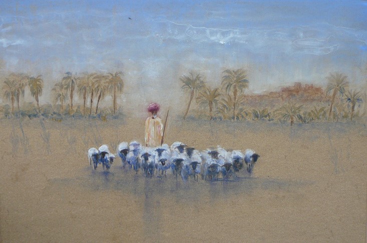Shepherd and his Flock, Oil on Elephanthide Paper Published 21.10.2017 at 733 × 485 in Travel The Shepherd, Oil on Elephanthide Paper, 16×24″, Double Mounted, 24×32″, £3250 16 x 24″