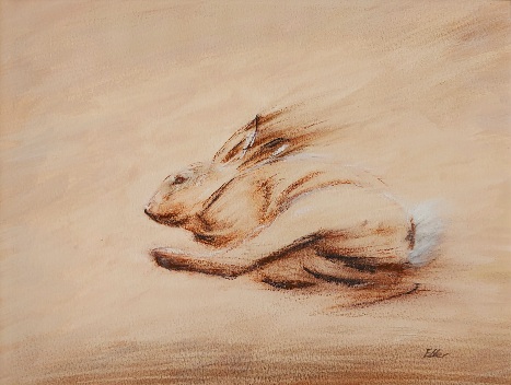 13 Haring Home, £395, Framed 12.5 x 16. 5 ins, 8 x 10 ins Published 16.10.2025 at 467 × 352 in Wildlife and Sporting Haring Home, Mixed Media, 32 x 42 cms, 12×16 ins, Framed £385