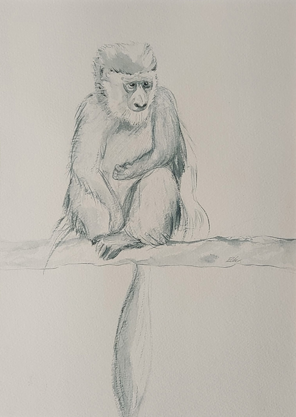 Monkey, Watercolour, 13 x 10 inches Published 19.11.2023 at 1000 × 1406 in Wildlife and Sporting Monkey, Watercolour, 14×10″, Mounted 20×16″, £385
