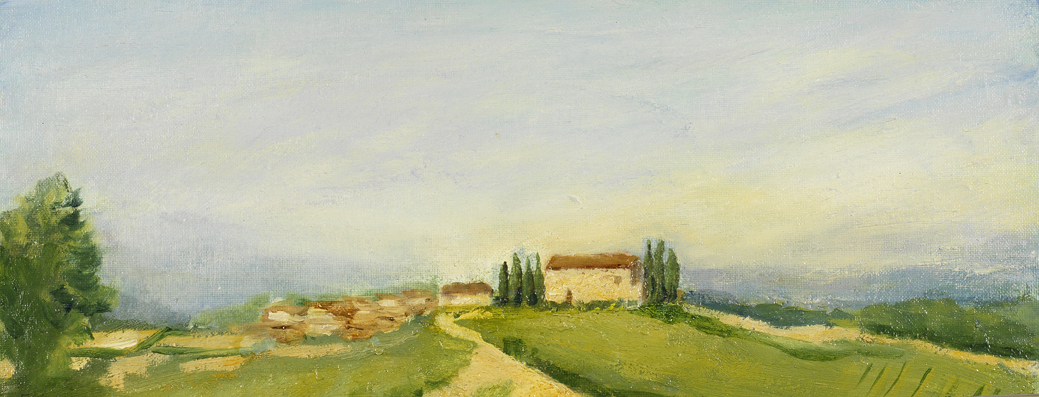 Tuscan Landscape Published 29.09.2014 at 1039 × 397 in Flowers and Landscapes Toscana, Oil on Panel, 6×16″. Polished Gesso Frame,12.5×23″, £775 Oil on panel 6 x 16 inches