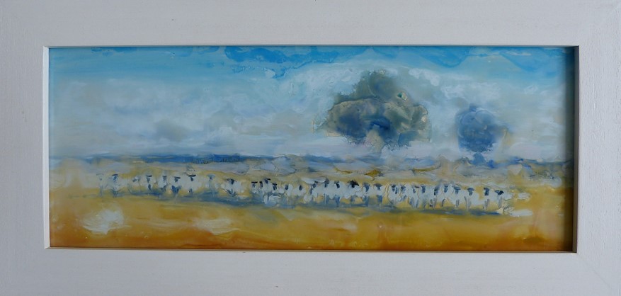 summer sheep framed Published 18.11.2023 at 877 × 418 in Flowers and Landscapes Summer Sheep, Framed, Oil on Glass Oil on Glass
